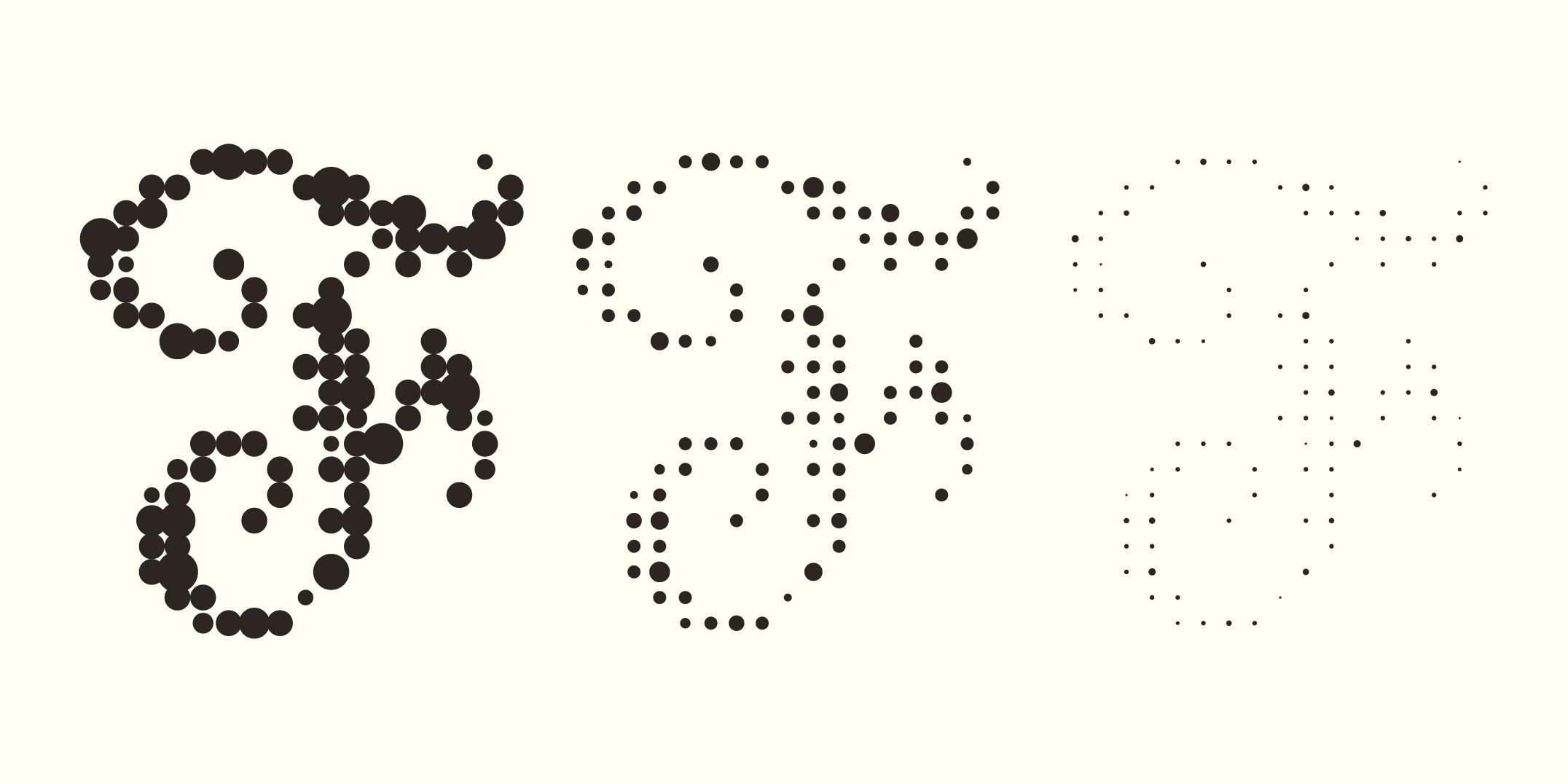 Blott is an in-progress experimental typeface. The structure is based on patterns from a 1920’s crochet initials handbook, which I have adapted into a more fluid dot-based style. I am currently working on introducing a lowercase alphabet and experimental motion to this project.