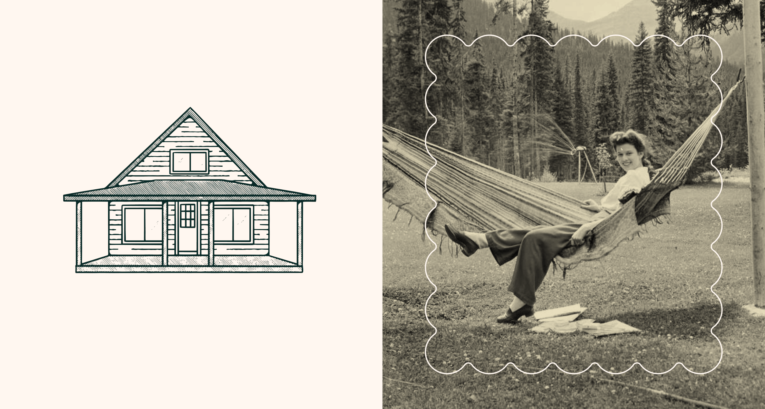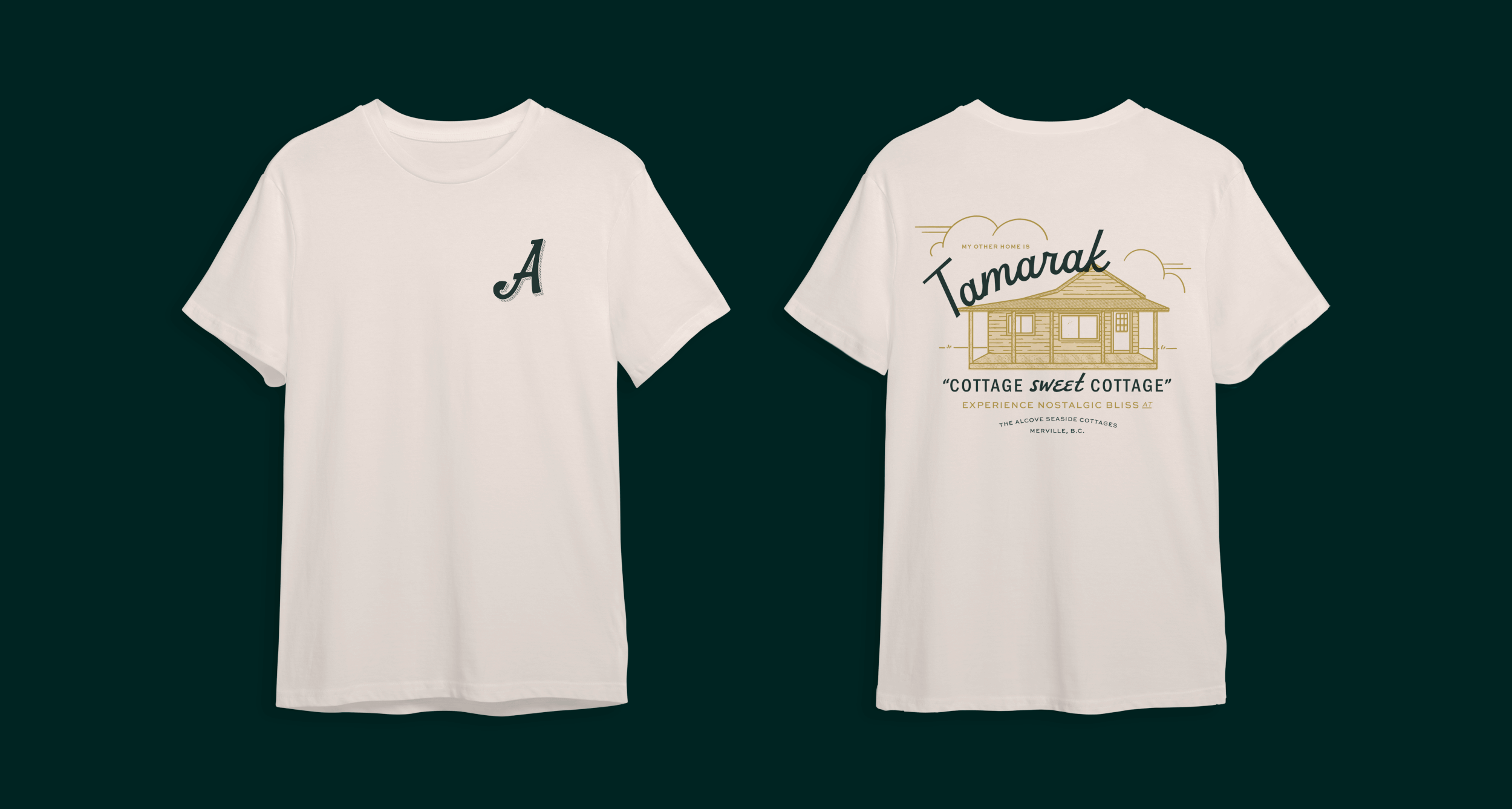 The Alcove is a fictional vacation spot on Vancouver Island based on a real beachfront cottage property I visit. I wanted to create a narrative focused on the property's history and the families who have been visiting for generations. The use of scalloped edge frames is inspired by the family photo albums in which the history of The Alcove can be found. Type choices and wood-carved style illustrations reflect the material of the log cottages while the natural setting is captured in the muted colour palette.